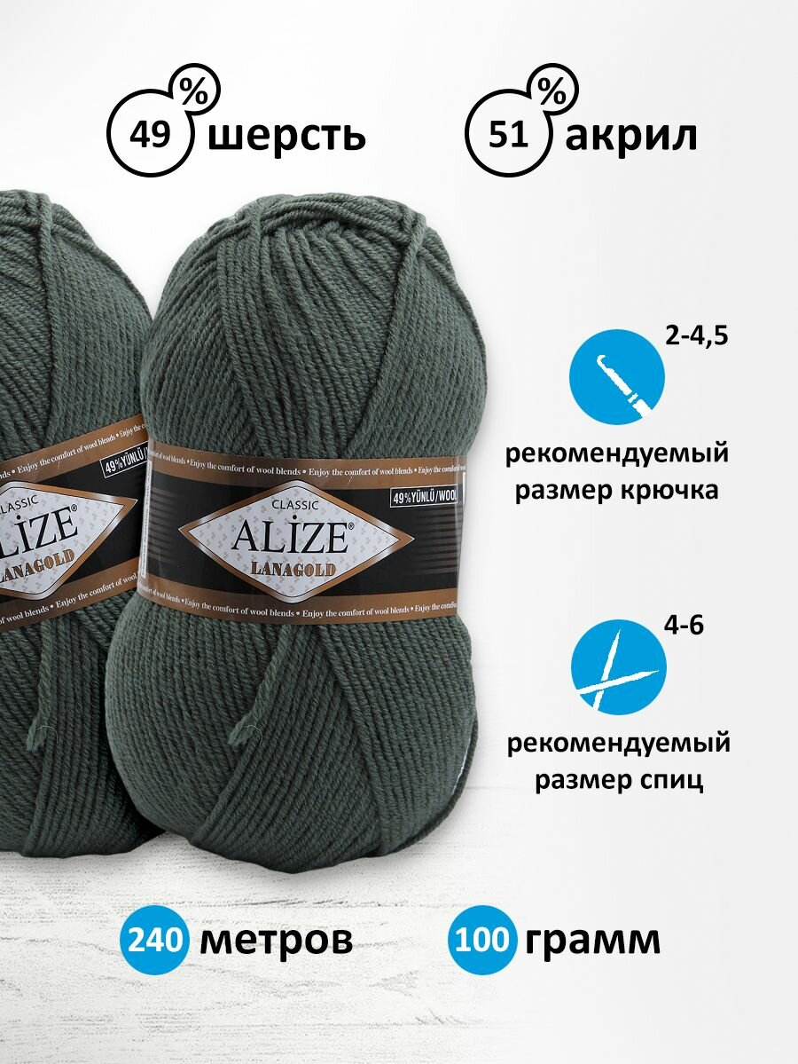 Пряжа для вязания ALIZE 'Lanagold', 100г, 240м (49% шерсть, 51% акрил) (758 оливковый), 5 мотков