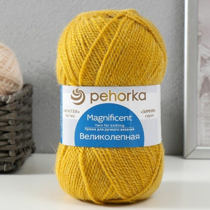 10 цен на Пряжа Пехорка Великолепная горчица (447), 70%акрил/30%ангора, 300м, 100г, 2шт