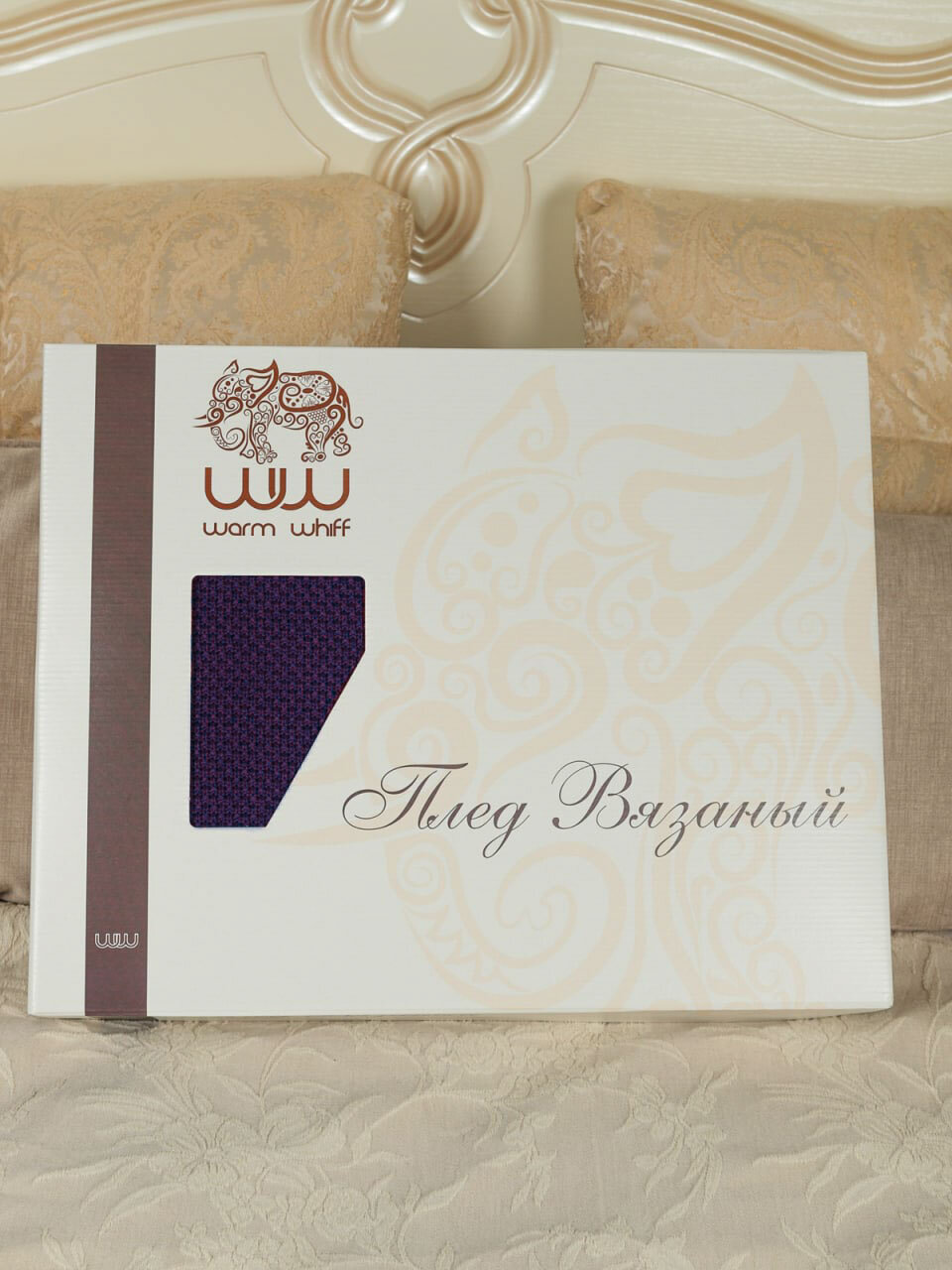 Плед, вязаный, новогодний, Warm Whiff, фиолетовый, 180х220, хлопок 100%, покрывало на кровать, на диван, на кресло, большой, тонкий, красивый, нежный, в подарочной коробке информация: