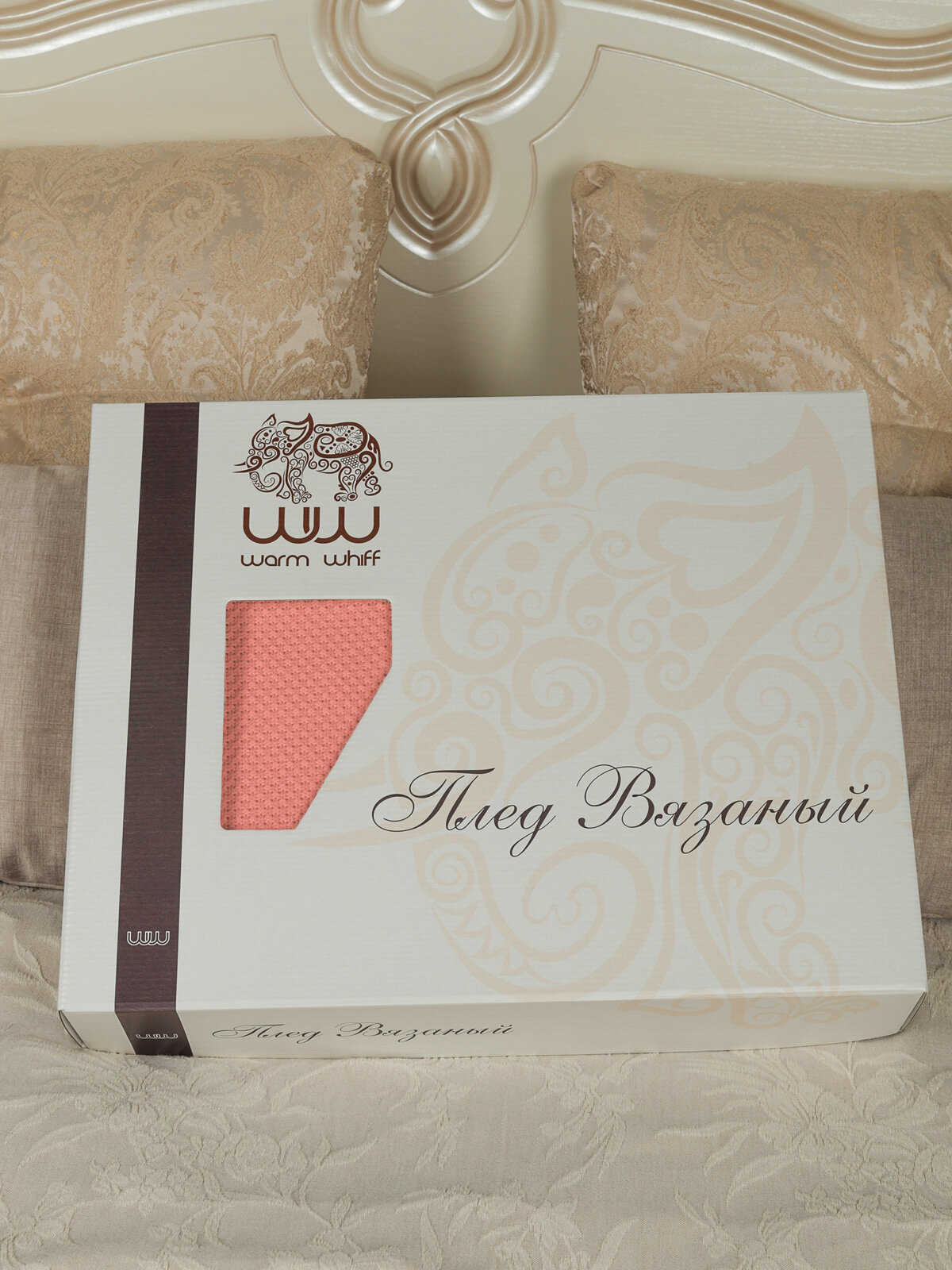 Отзывы на Плед, вязаный, новогодний, Warm Whiff, пудровый, 180х220, хлопок 100%, покрывало на кровать, на диван, на кресло, большой, тонкий, красивый, нежный, в подарочной коробке