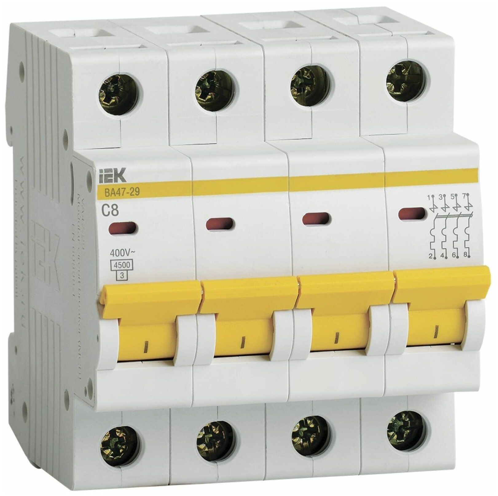Отзывы на Автоматический выключатель ВА47-29 4Р 8А 4,5кА С MVA20-4-008-C ИЭК