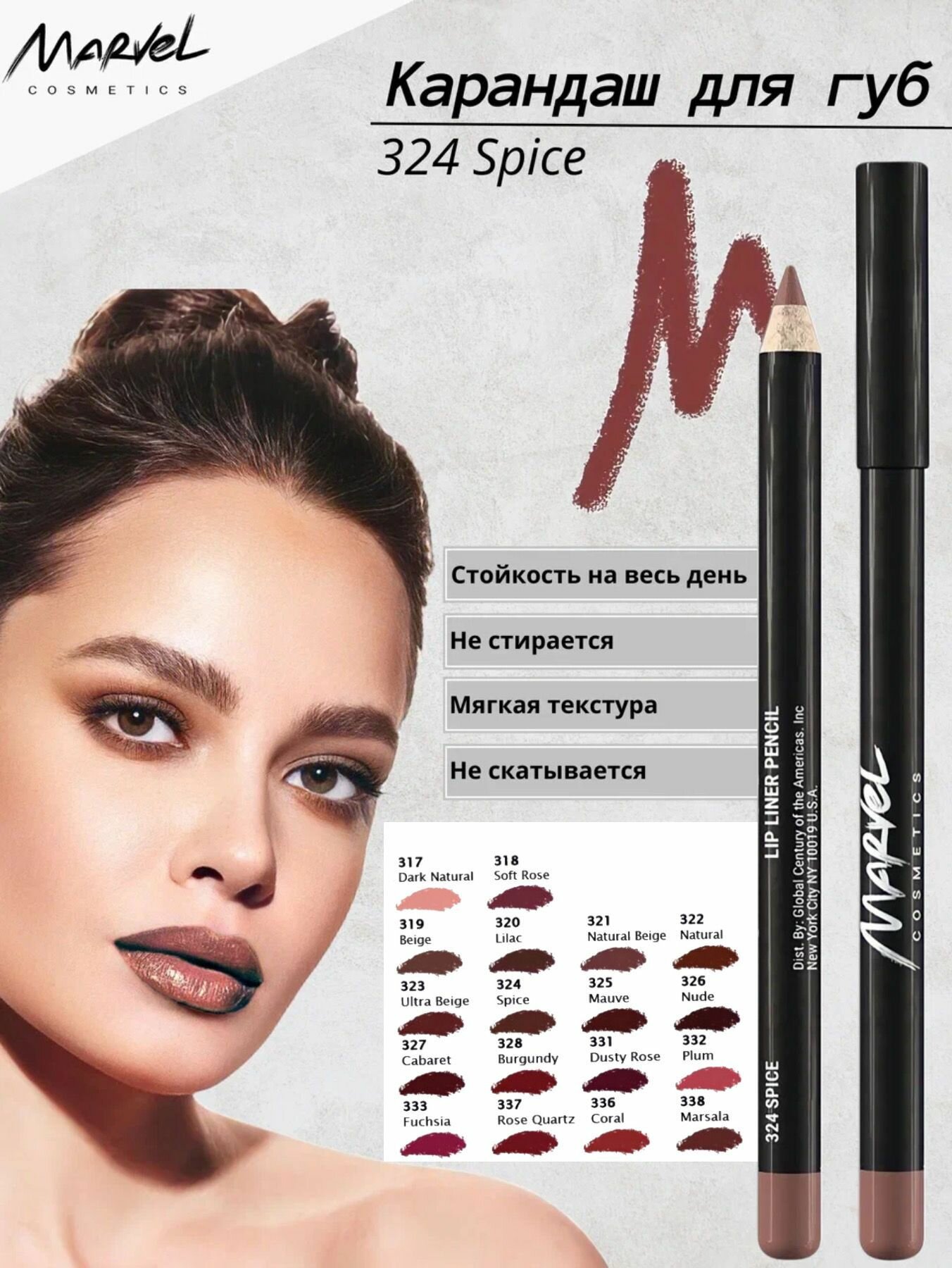Марвел Косметикс / Marvel Cosmetics - Карандаш для губ Lip Liner Pencil тон 324 Spice информация: