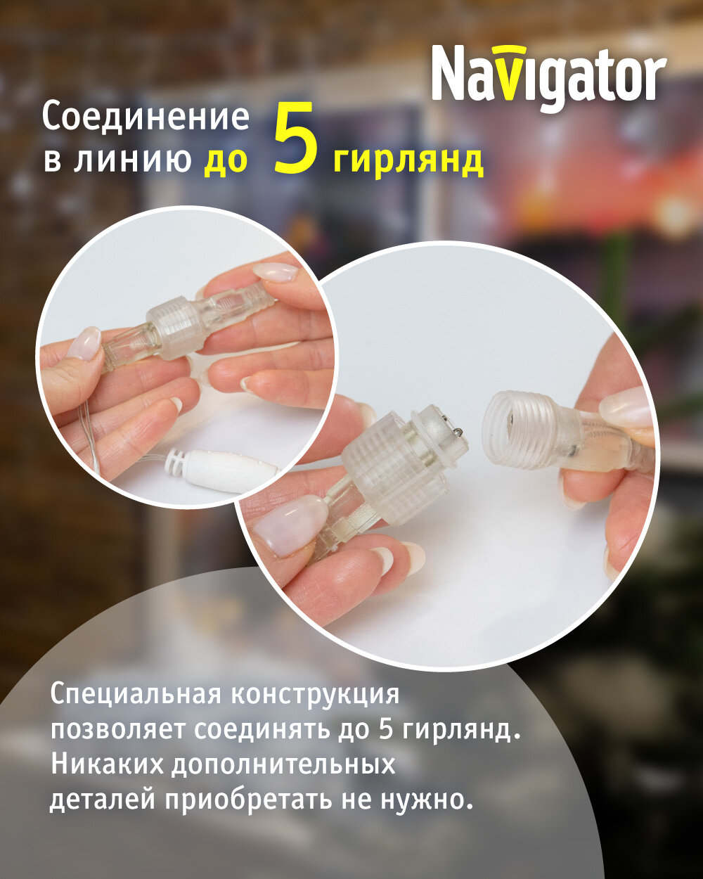 Гирлянда новогодняя светодиодная NGF-I02-100WW-8-3.5m-230-TR-IP44 (61843 NGF-I02) | код. 21285 | Navigator Group ( 1шт. ) 1 930 ₽
