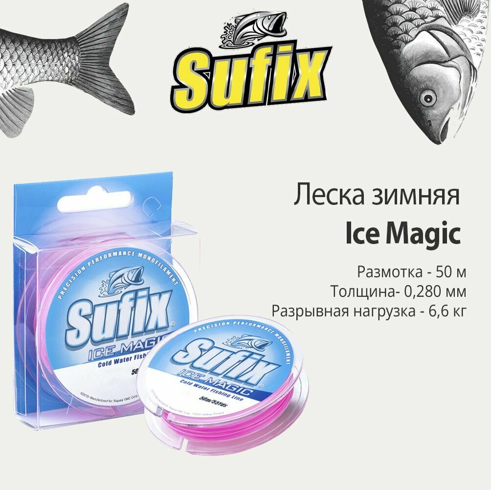 Sufix, Леска зимняя Ice Magic, 50м, 0.280мм, 6.6кг, бело/розовая информация: