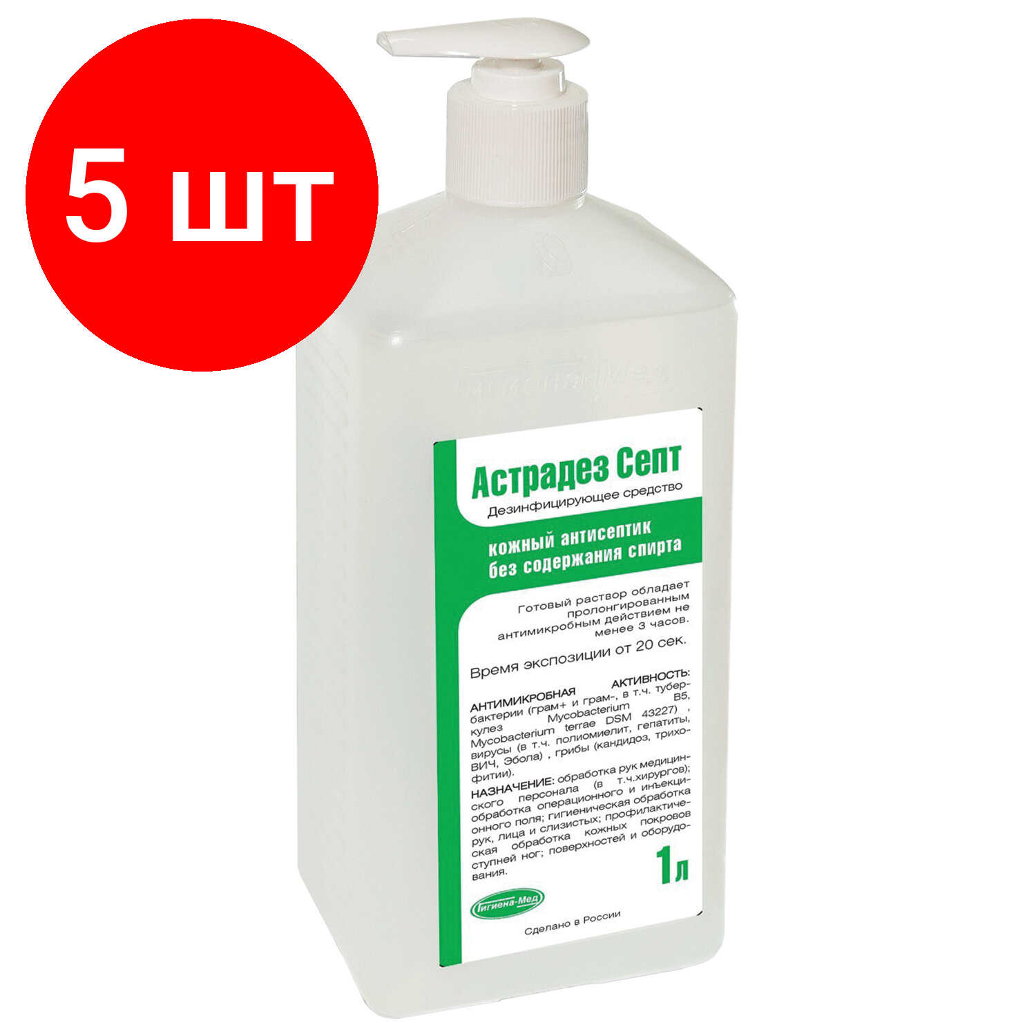 10 цен на Комплект 5 шт, Антисептик для рук и поверхностей бесспиртовой с дозатором 1л астрадез-септ, дезинфицирующий, жидкость