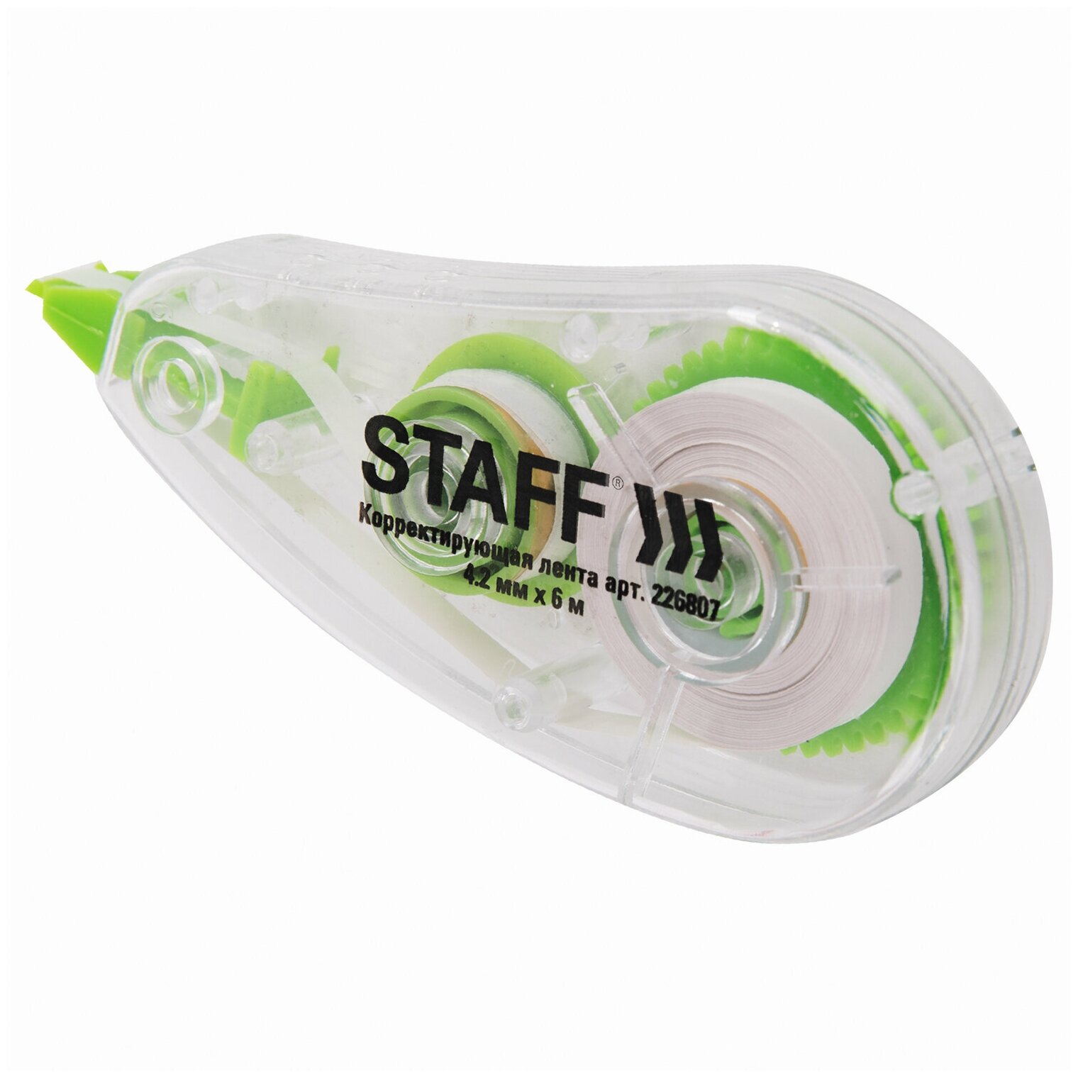 Корректирующая лента Staff, 5мм x 3м, корпус зеленый, с подкручиванием, в блистере (226810), 48шт.