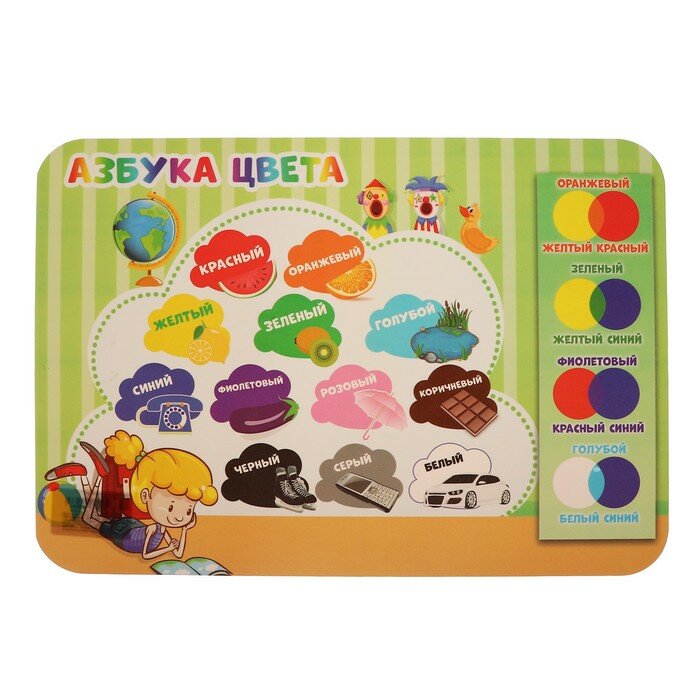 Отзывы на Накладка на стол пластик А4 обучающая, 330 х 230 мм, 400 мкм, "Азбука цвета"