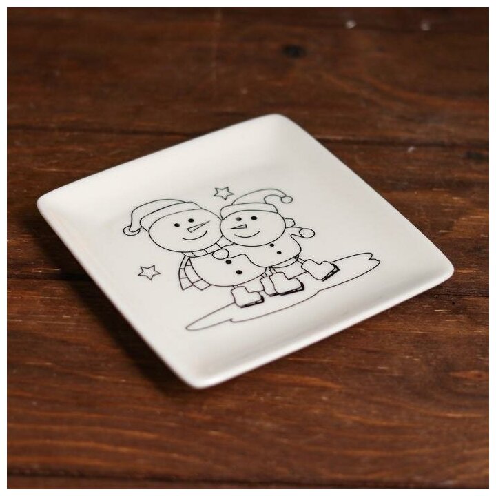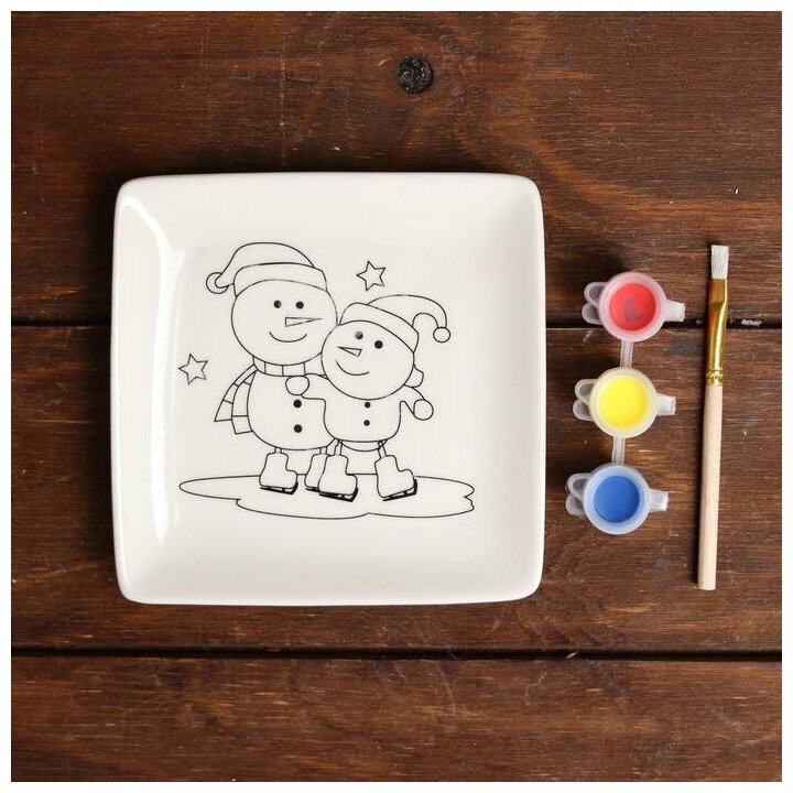 Набор тарелка под раскраску «Снеговички» краска 3 цв по 2 мл, кисть 691 ₽