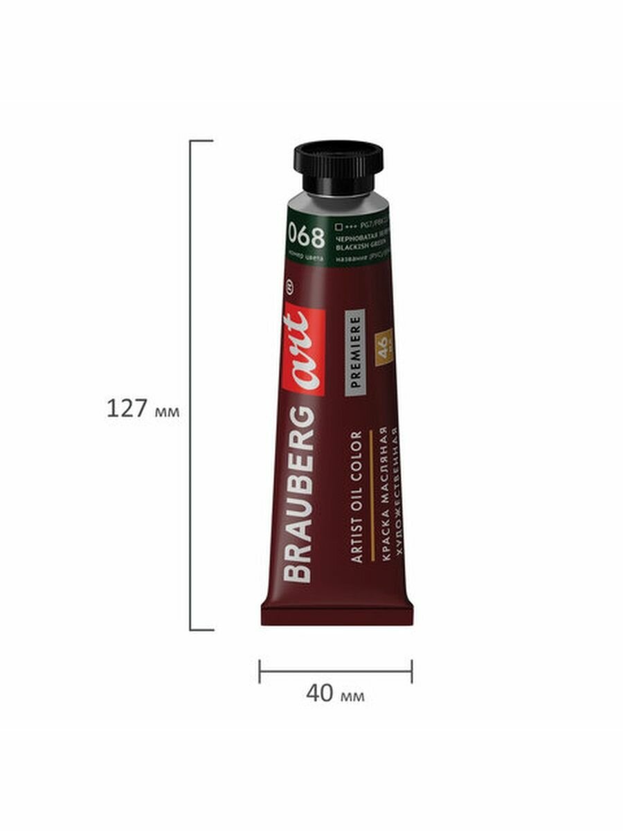 Краска масляная художественная BRAUBERG ART PREMIERE, 46 мл, проф. серия, черноватая зеленая, 191432 (цена за 1 ед.товара) информация: