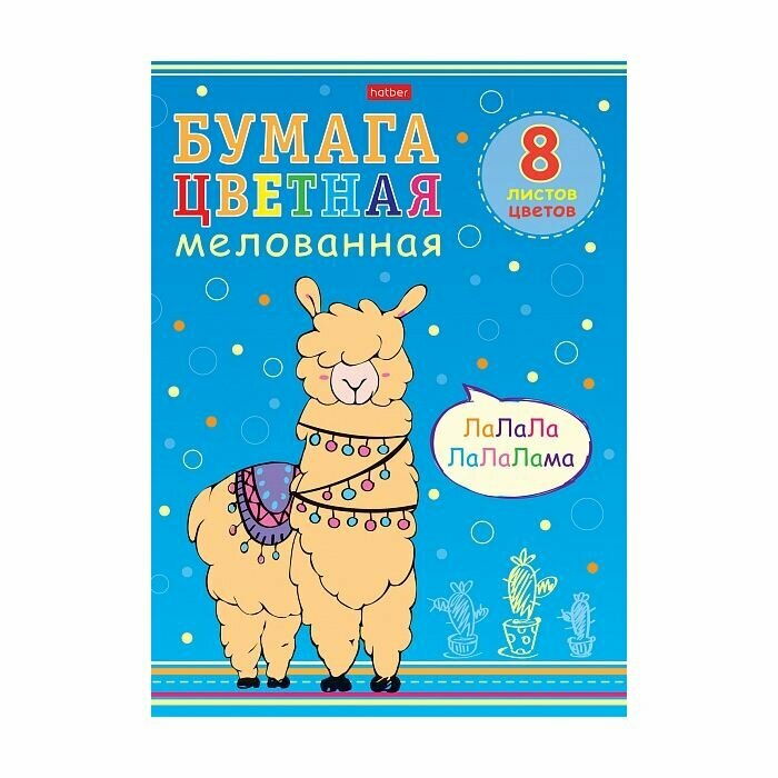 Hatber Набор бумаги цветной Мелованной 8л 8 цв. А4ф Обложка мел. картон на скобе - I love LAMA-