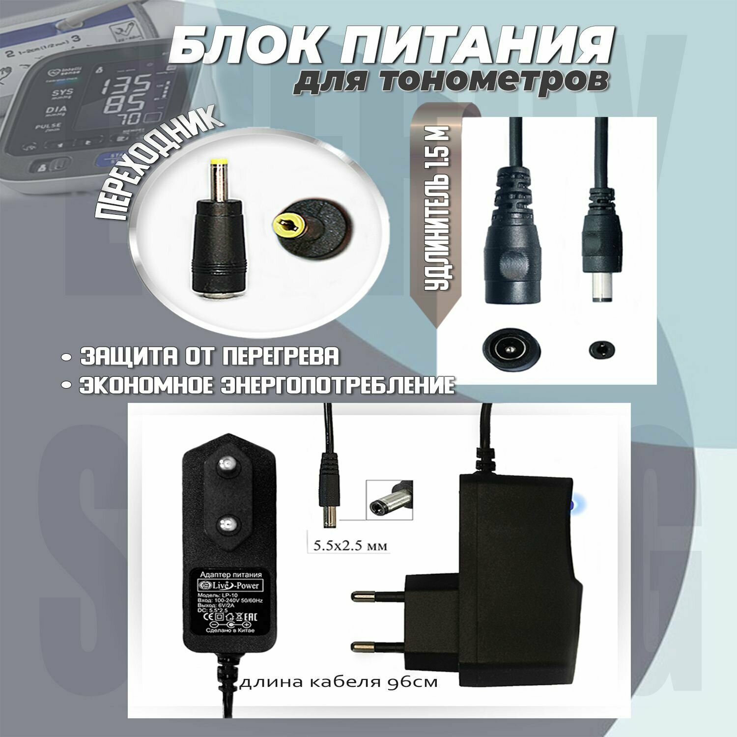 Блок питания для тонометров OMRON, AND, Microlife, B.WELL 6V 2A с переходником информация: