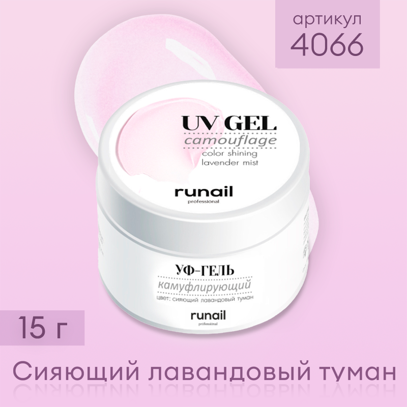 Runail Professional Камуфлирующий УФ-гель (цвет: сияющий лавандовый туман), 15 г ( 4066 )