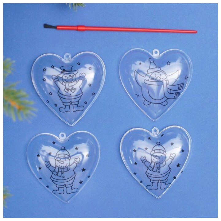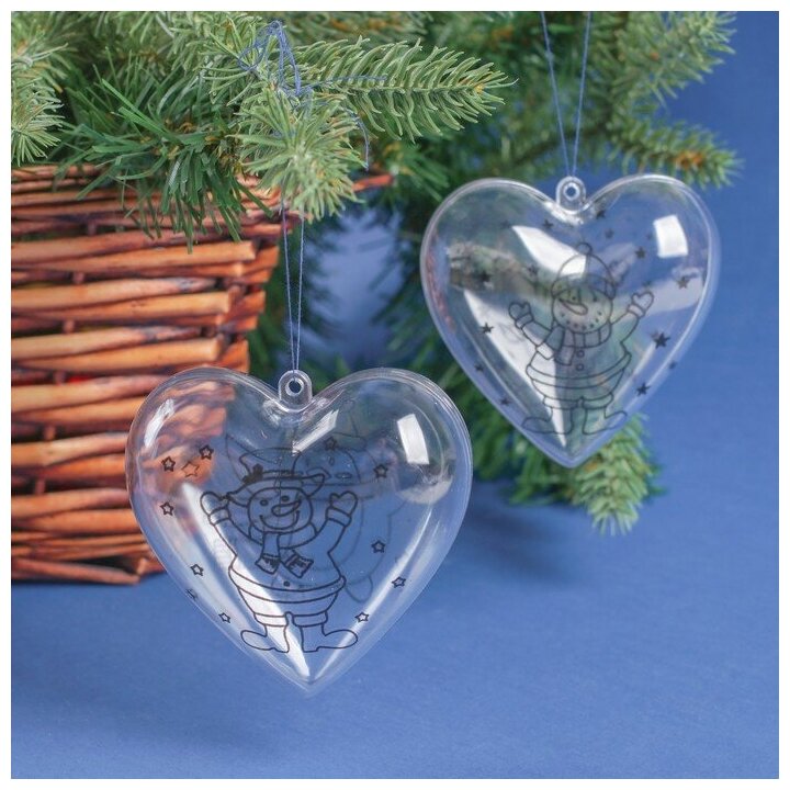 Школа талантов Набор новогодних украшений под раскраску «Сердце» 2 шт., размер собранно 6 ,5 см,микс. "Микс" - один из товаров представленных на фото, без возможности выбора.