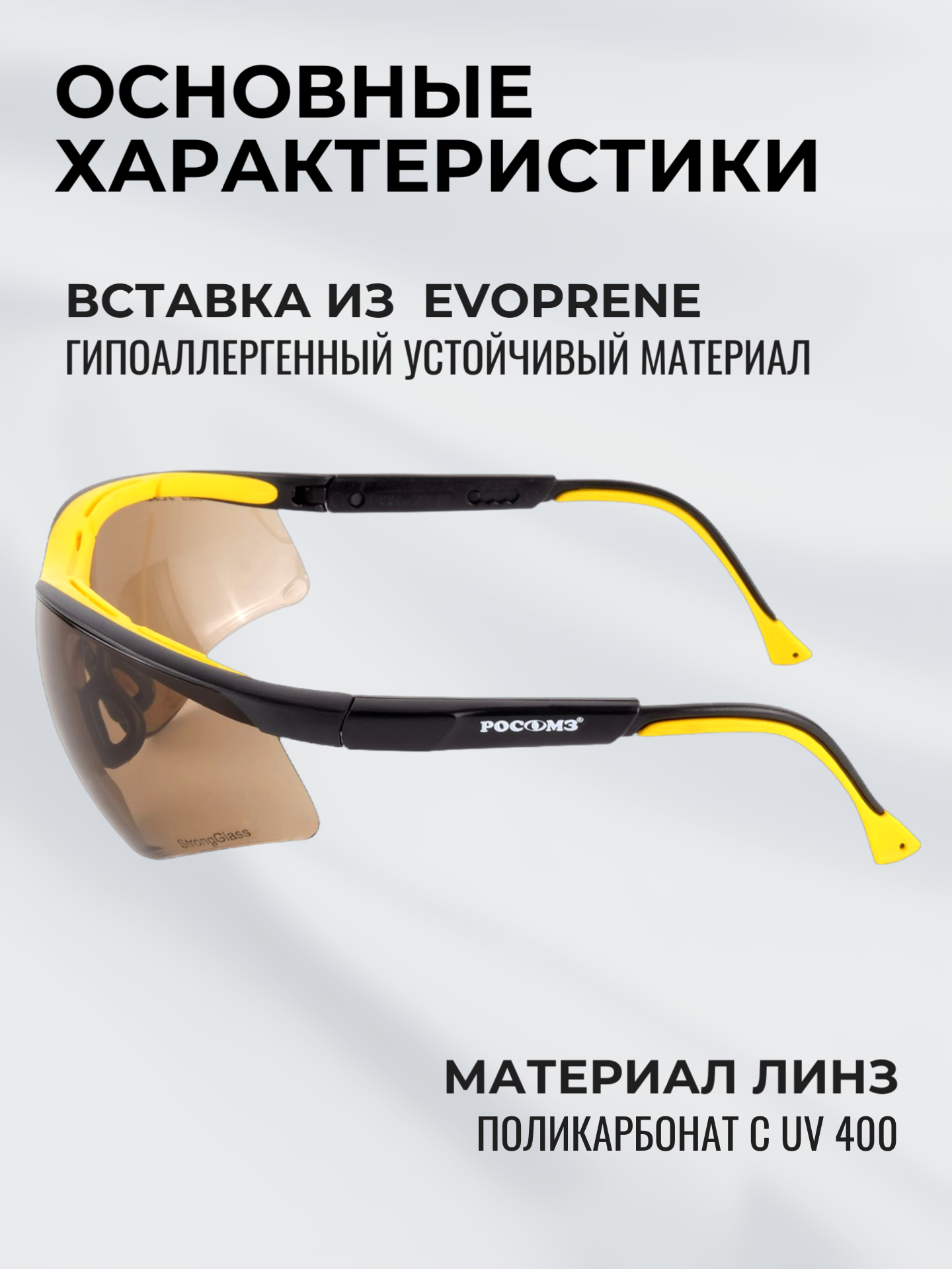 Очки защитные РОСОМЗ О50 Monaco StrongGlass, солнцезащитные, вставка от пыли и пота 743 ₽