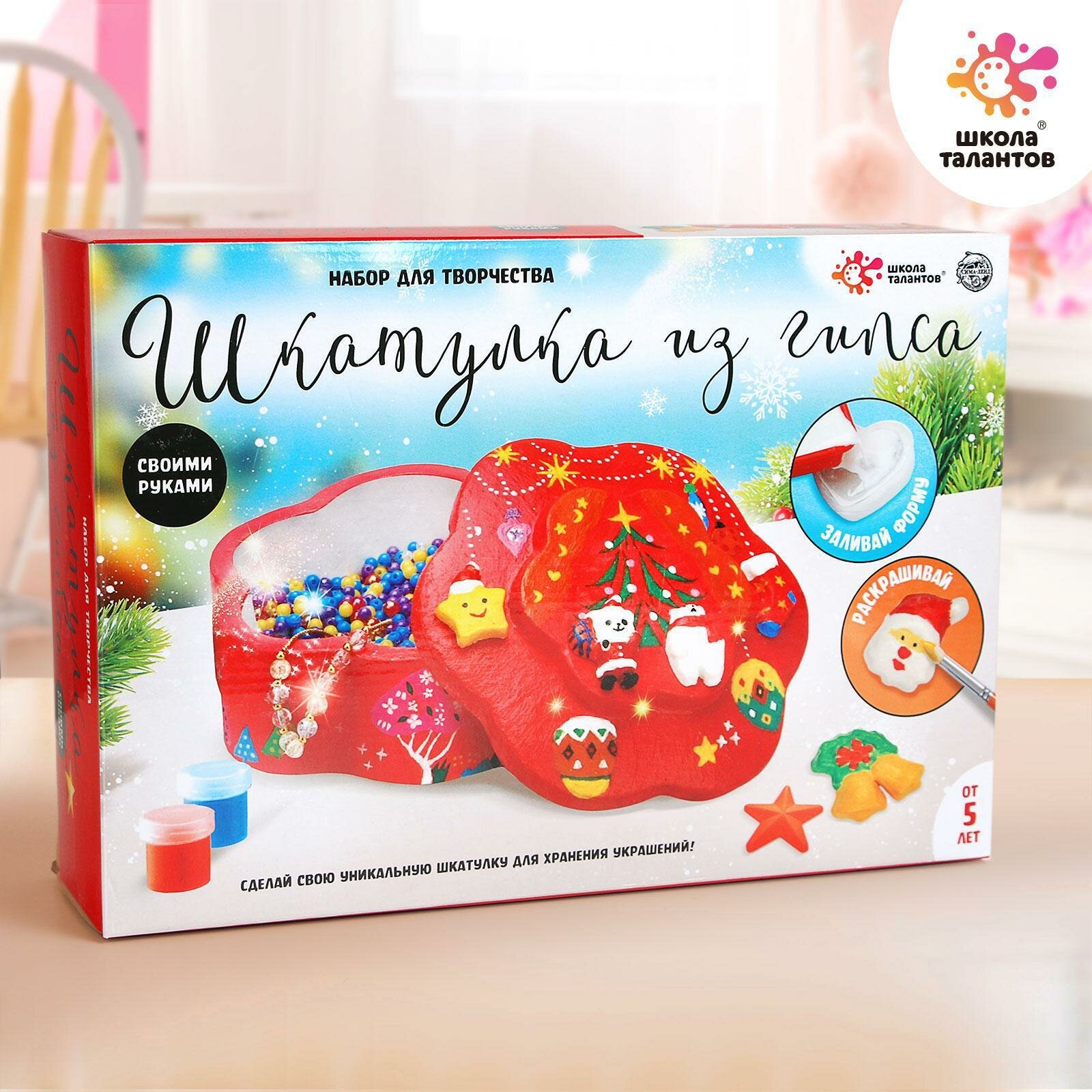 Школа талантов Набор для творчества «Шкатулка из гипса, новогодняя» товар без упаковки (уценка) информация: