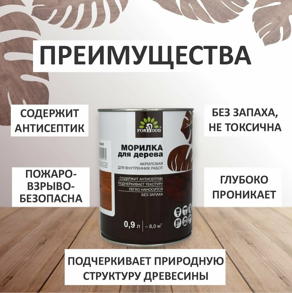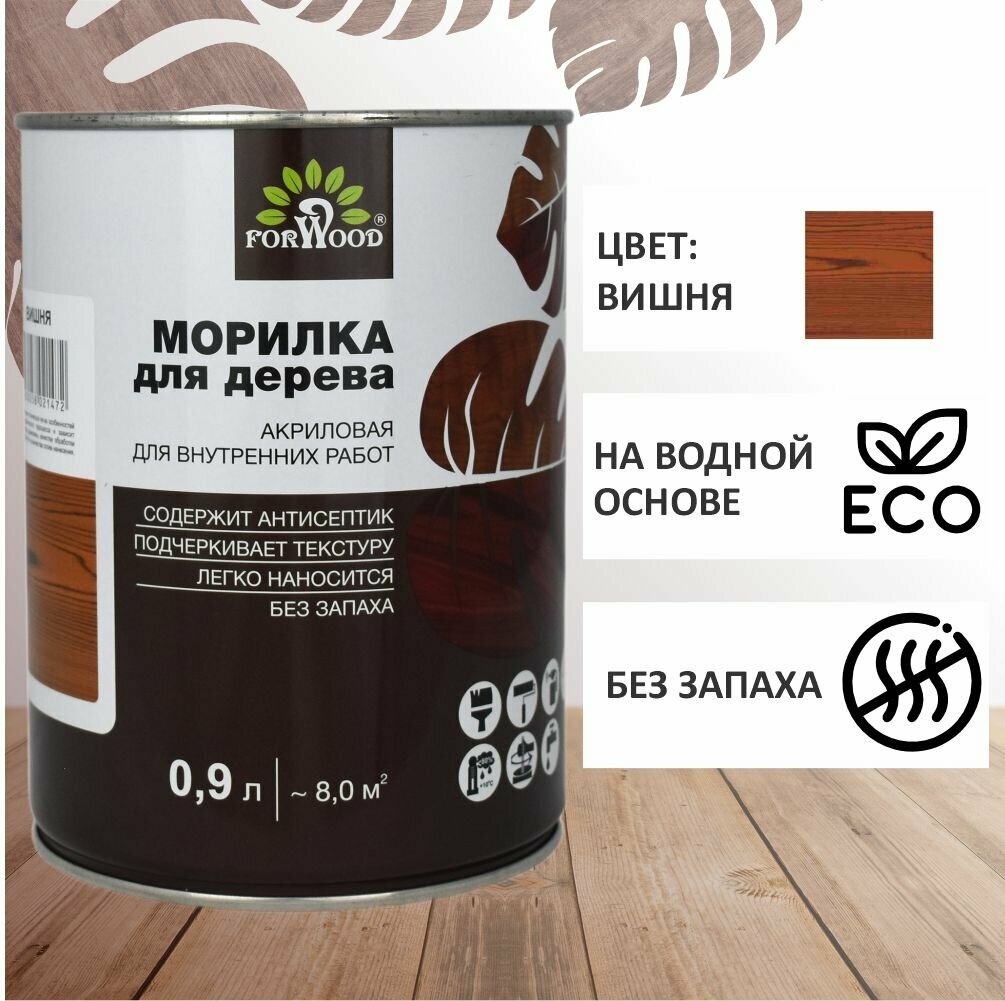 Морилка акриловая акрилатная Forwood вд-ак 21 цвет вишня 0.9л для внутренних работ без запаха