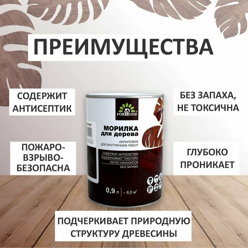 Морилка акриловая акрилатная Forwood вд-ак 21 цвет тик 0.9л для внутренних работ без запаха