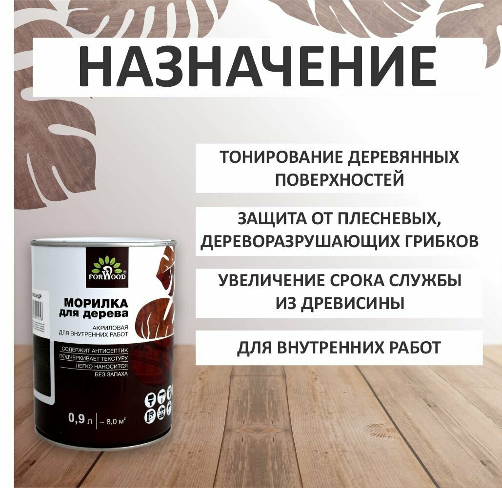 Морилка акриловая акрилатная Forwood вд-ак 21 цвет эбеновое дерево 0.9л для внутренних работ без запаха