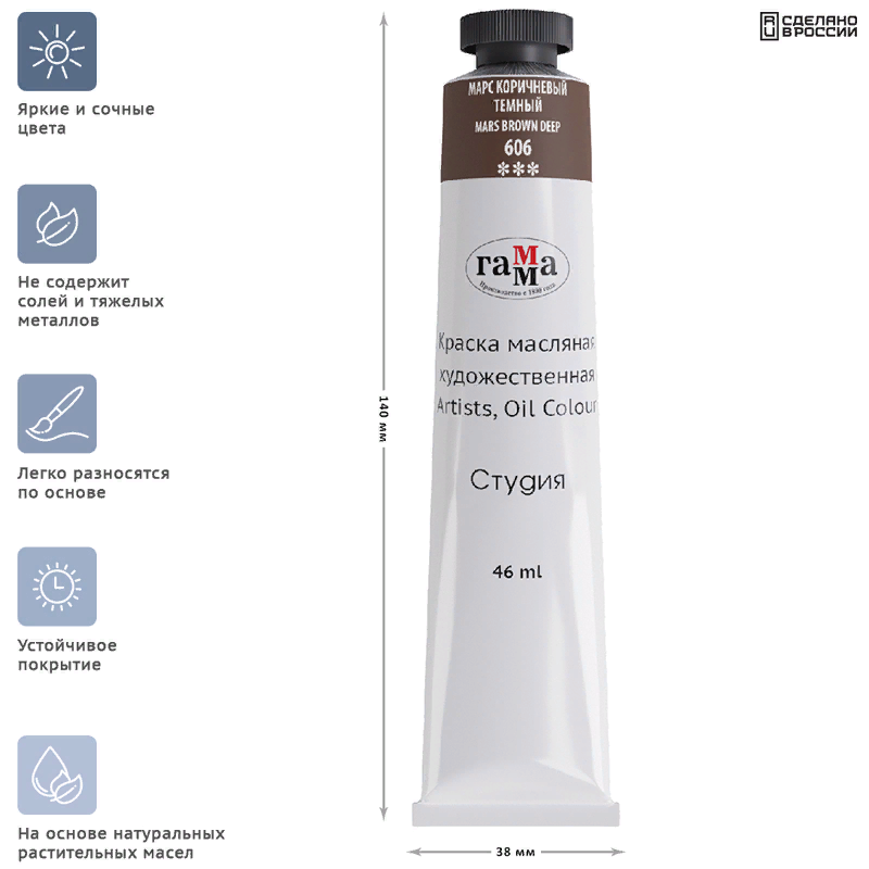 Краска масляная художественная Гамма "Студия", 46мл, туба, марс коричневый темный 233 ₽