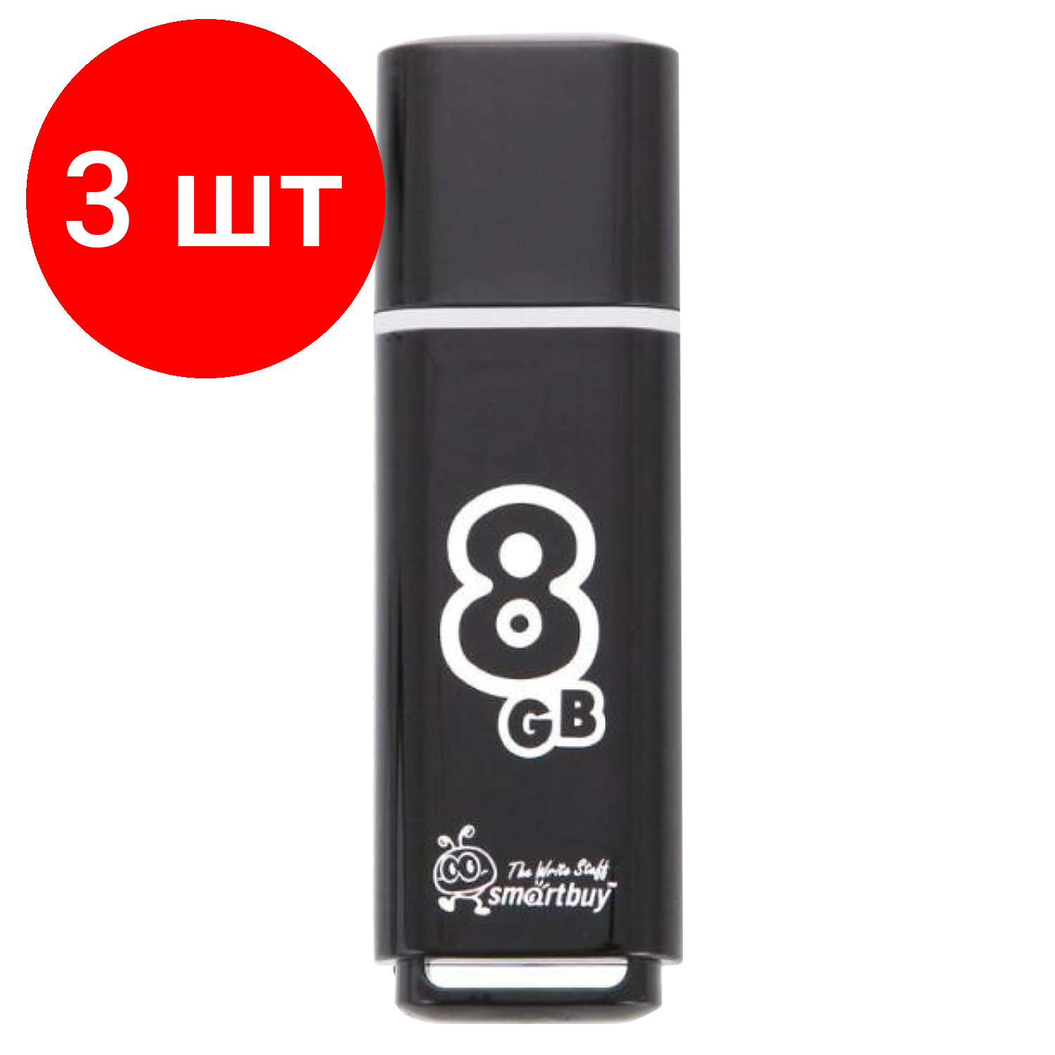 10 цен на Комплект 3 шт, Флеш-диск 8 GB, SMARTBUY Glossy, USB 2.0, черный, SB8GBGS-K