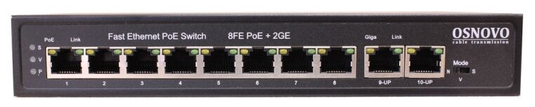 OSNOVO PoE коммутатор, 8 x FE с поддержкой PoE (IEEE 802.3af/at), 2 x GE, до 30W на порт, суммарно д