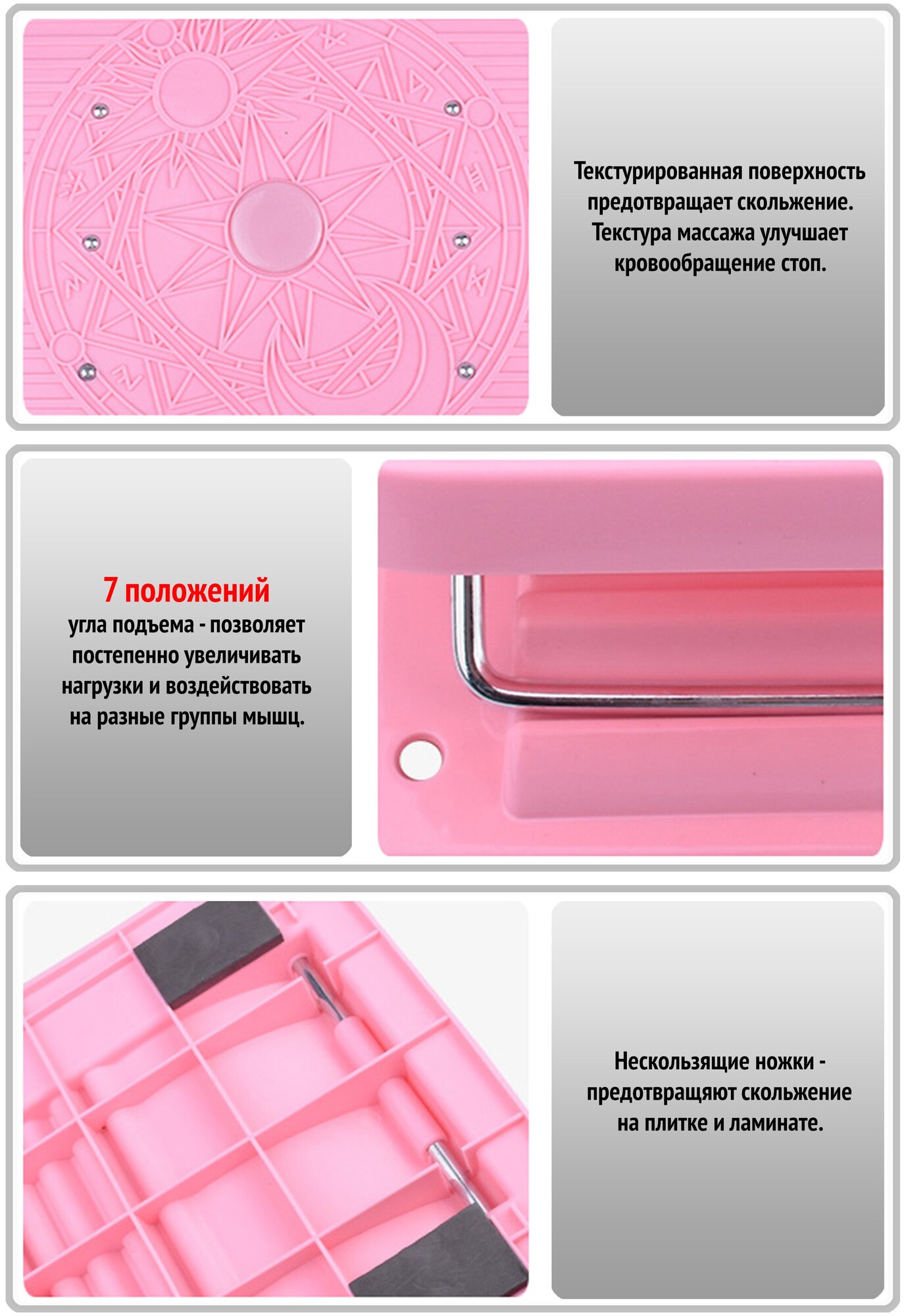 Тренажер для растяжки ахиллова сухожилия ног, спины розовый/ Степ платформа с регулировкой / Доска для фитнеса информация: