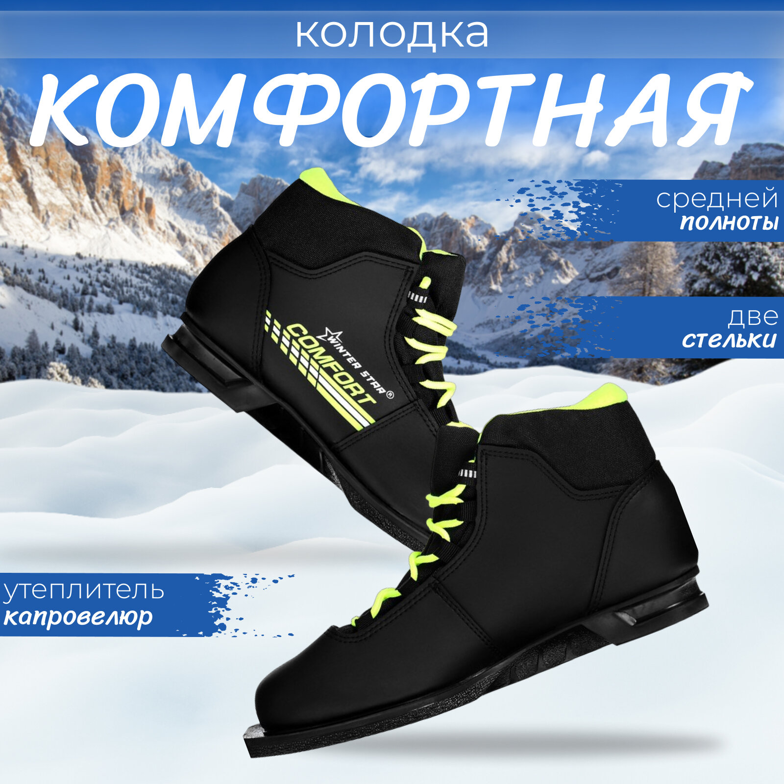 Ботинки лыжные Winter Star comfort, цвет чёрный, лого лайм неон, S, размер 41 Winter Star 7881805 .
