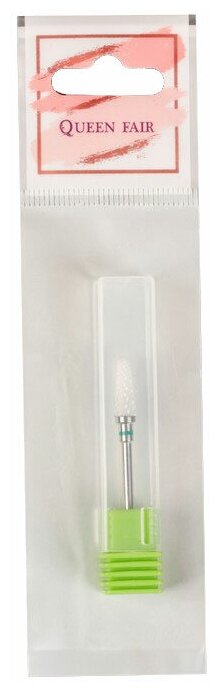 Queen fair Фреза керамическая для маникюра «Конус скруглённый», крупная нарезка, 6 × 14 мм, в пластиковом футляре, цвет белый