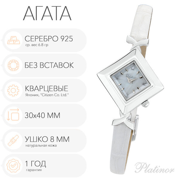 Женские серебряные часы Platinor Агата, арт. 43900.303 информация: