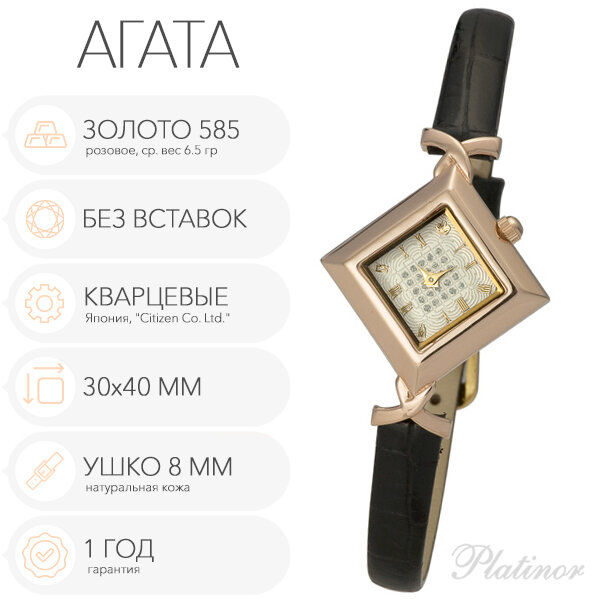 Женские золотые часы Platinor Агата, арт. 43950.219 информация: