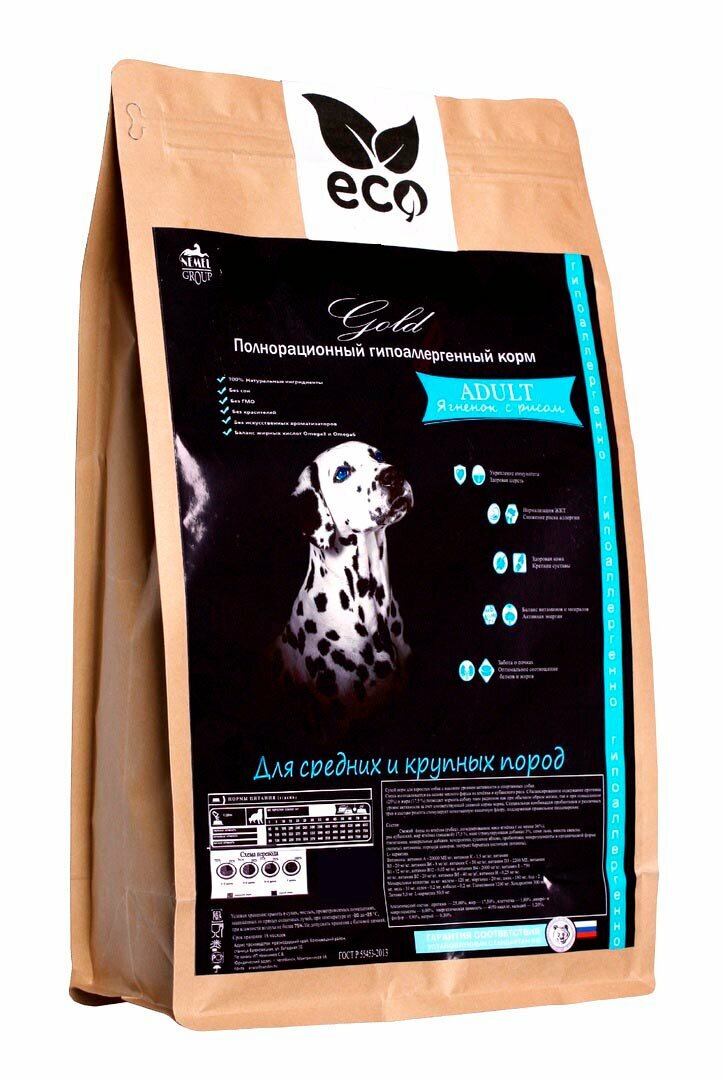 Сухой корм для собак средних и крупных пород Gold ягнёнок с рисом полнорационный/гипоаллергенный/без курицы информация: