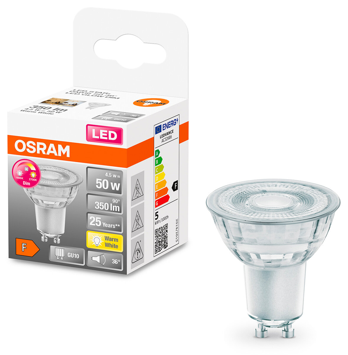 10 цен на Osram / Ledvance LED STAR+ GLOWdim PAR16 50 36° 4.5 W/1800...2700 K GU10 (1 шт.)