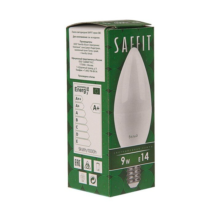 SAFFIT Лампа светодиодная SAFFIT, C37, 9 Вт, E14, 4000 К, 810 Лм, 220°, 100 х 37 информация: