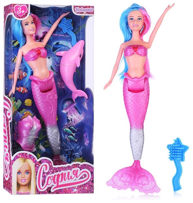 Кукла-русалка софия 29 см, двухцветные волосы, сменный топ, дельфин, расчёска карапуз 66001M-D1-S-BB