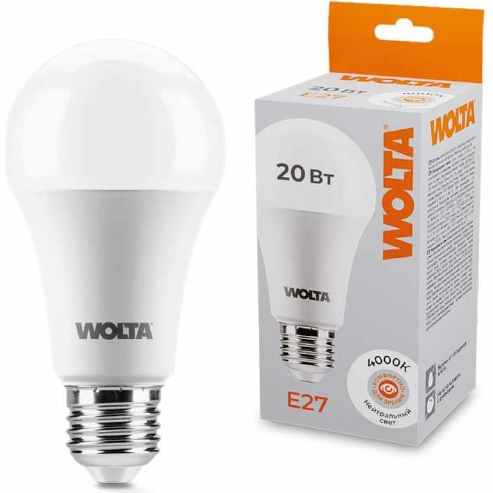 Светодиодная лампа Wolta ЛОН A65 Е27 20W(1800Lm) 4000K 4K 4K 122x65 25S65BL20E27 информация:
