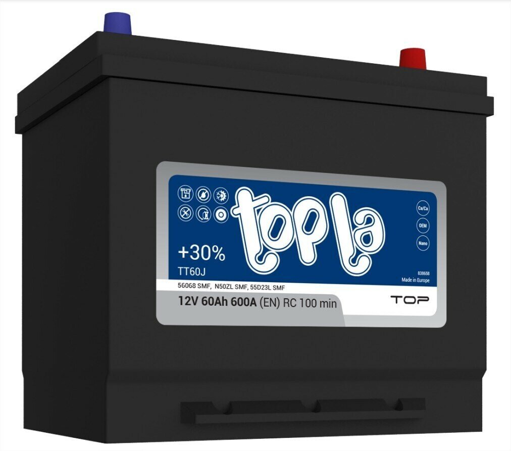 Отзывы на Аккумулятор автомобильный TOPLA TOP JIS TT60J 60 Ач, пуск. ток 600 А, обрат. полярность, 230x173x220, SMF (118861 56068)