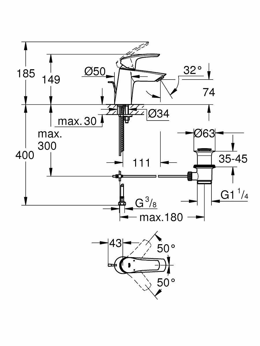 Смеситель для раковины GROHE Eurosmart, S-Size, хром (23965003) информация: