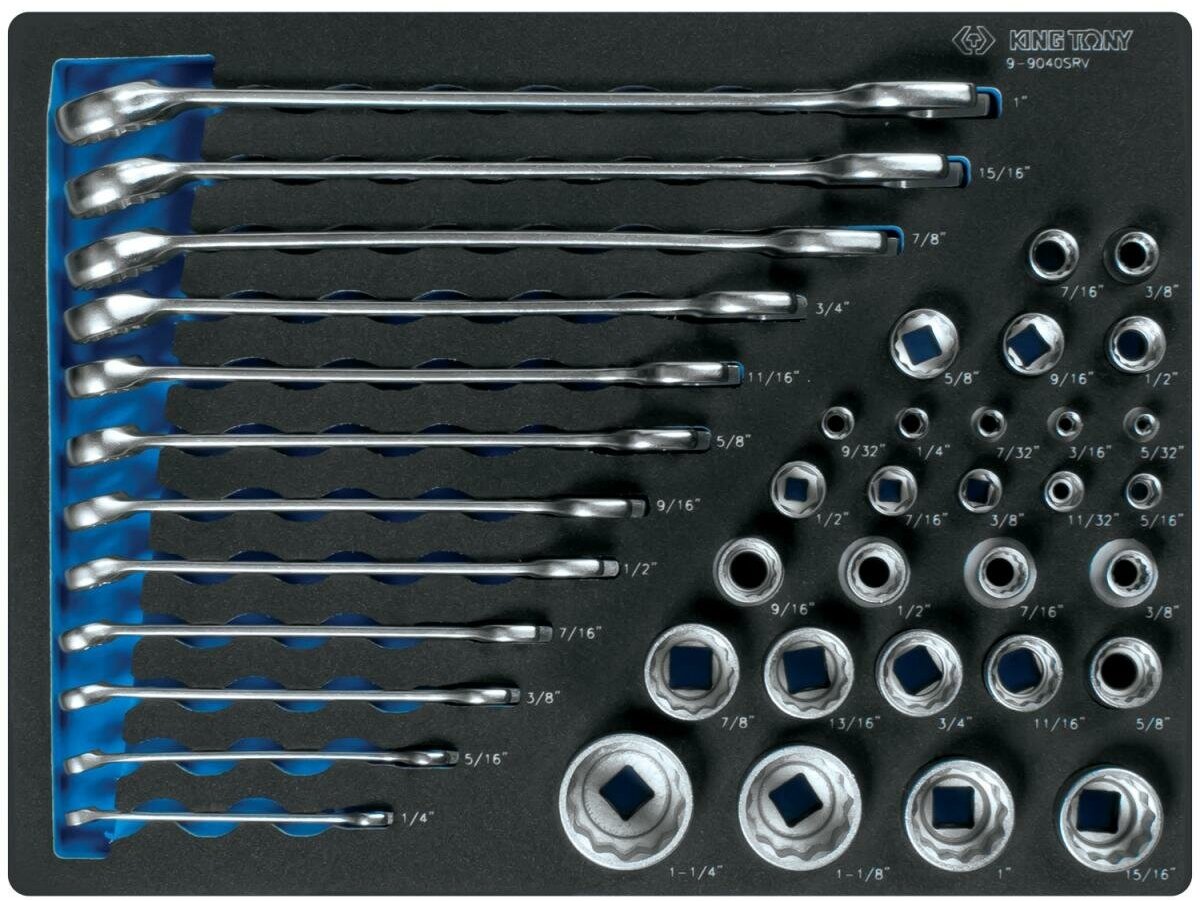 9-9040SRV KING TONY Набор комбинированных ключей, набор торцевых головок 1/4"&3/8"&1/2", ложемент, 40 предмето