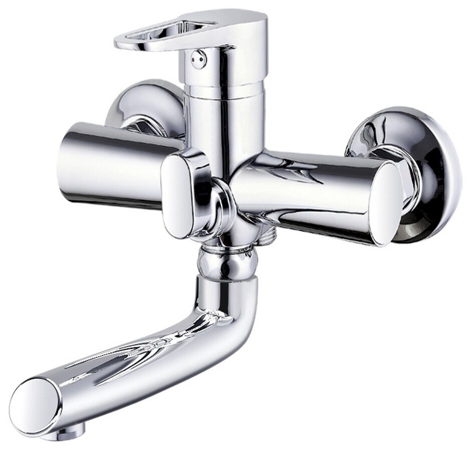Смеситель на раковину настенный Эверест B46-350 с круглым поворотным изливом, кран-буксы 1/2", хром