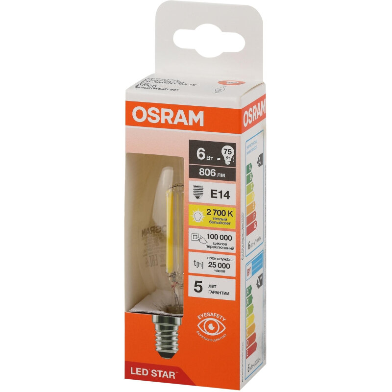 10 цен на Osram / Ledvance LED STAR CLAS BA 75 CL 6 W/827 E14 (1 шт.)