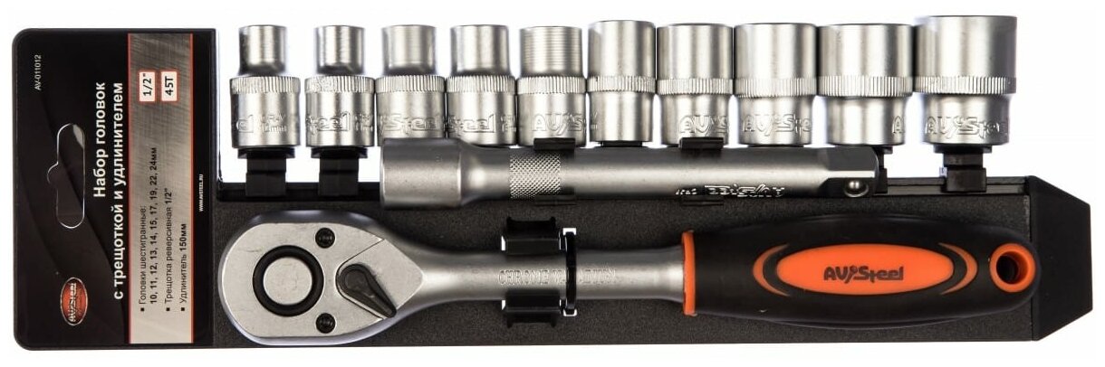 AV Steel Набор инструмента 12 пр. трещетка 1/2+ удлиннитель+10 торцевых головок AV-011012