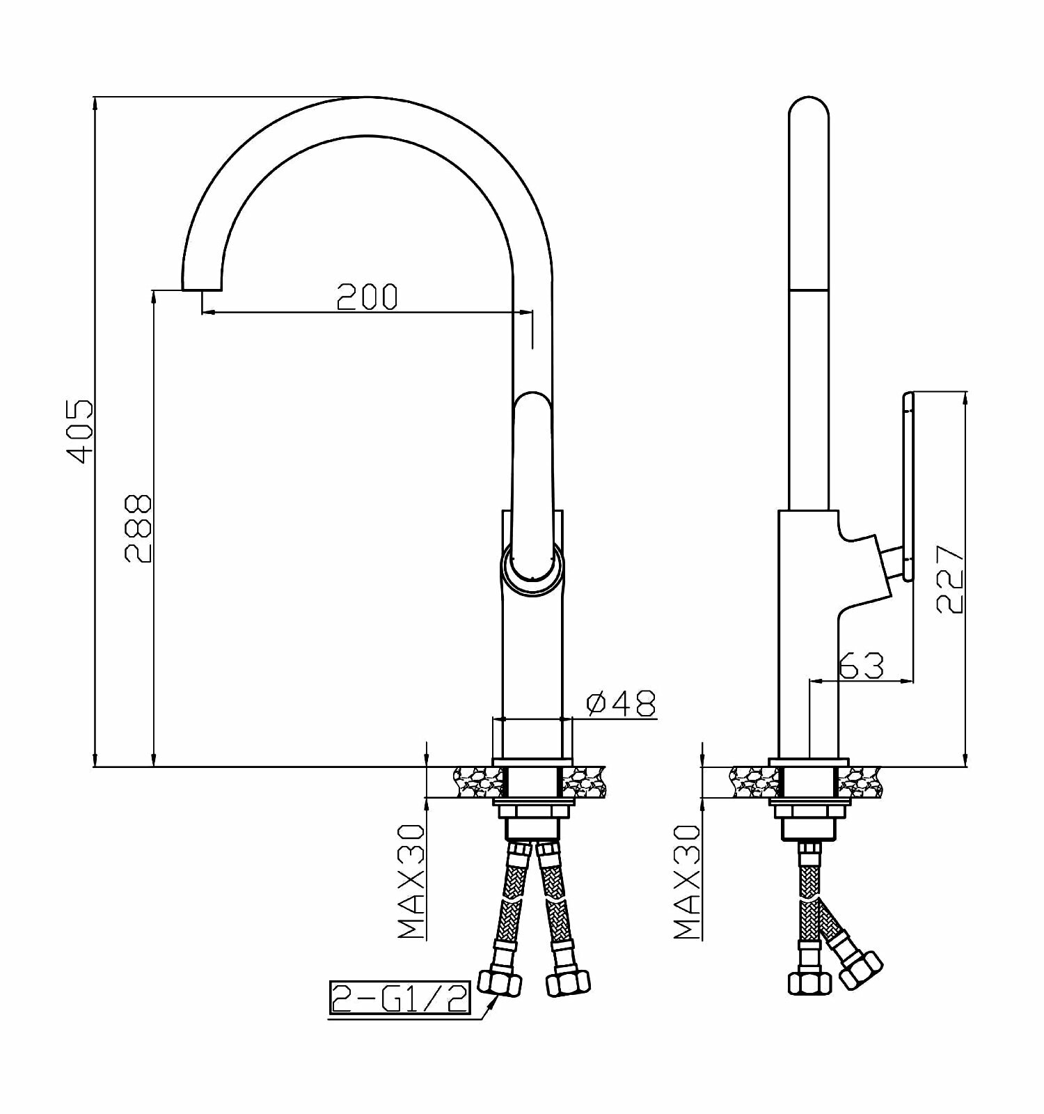| Тип излива | поворотный / гибкий |