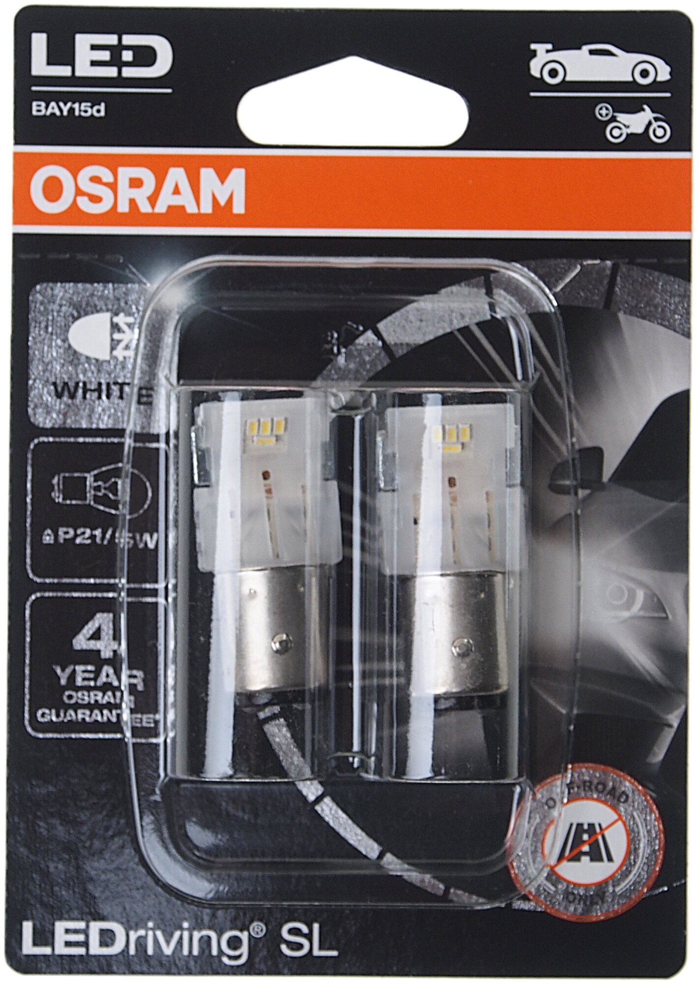 Ledriving sl (3поколение) 2,0w/12v p21/5w bay15d bli2 белый 6000k 2шт, osram, 7528dwp02b
