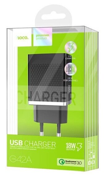 Сетевое зарядное устройство (СЗУ) Hoco C42A QC 3.0 (USB) 3 А, черный