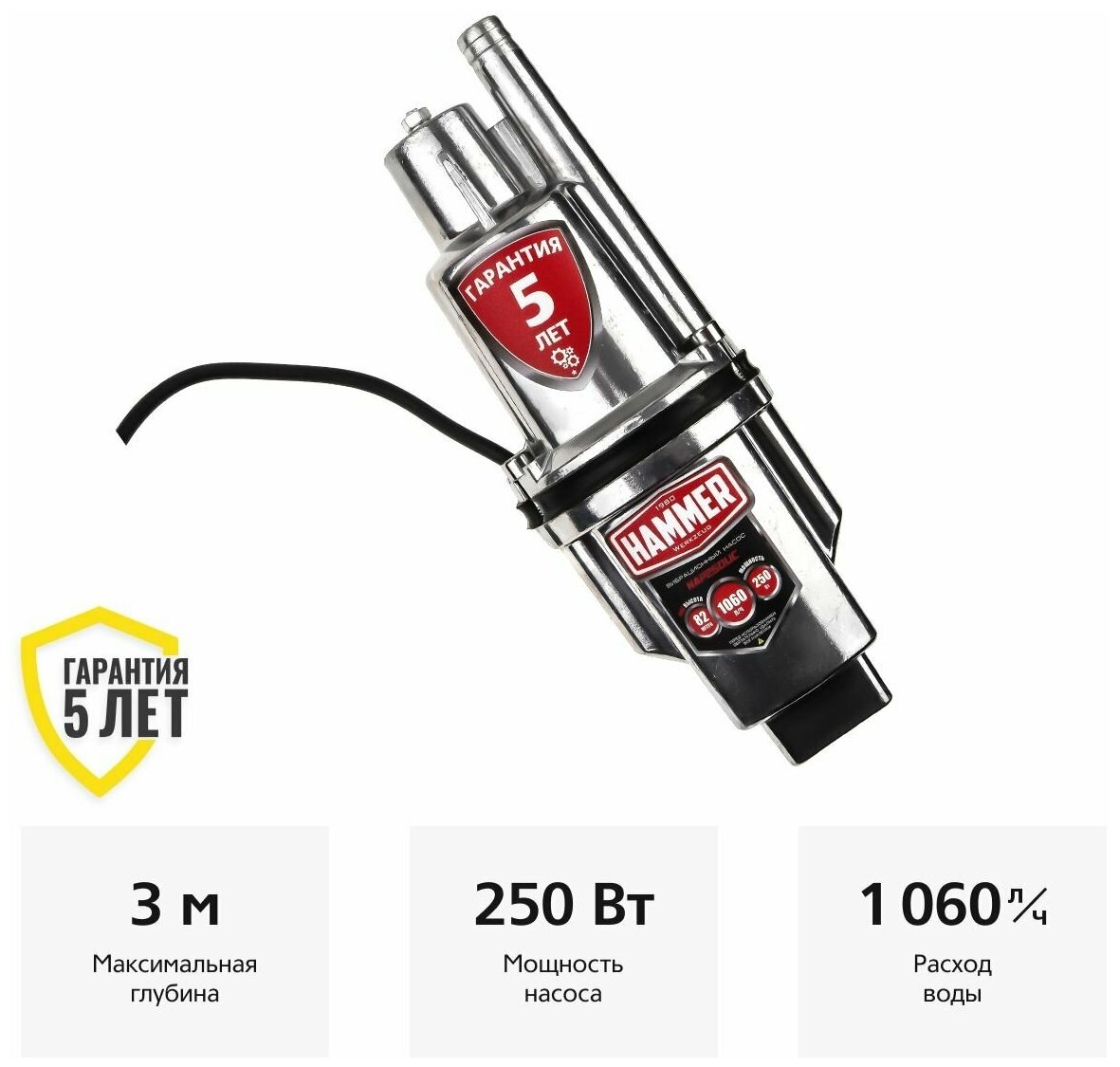 Насос вибрационный hammer nap250uc 25м 250вт 1060л/ч верхний забор информация:
