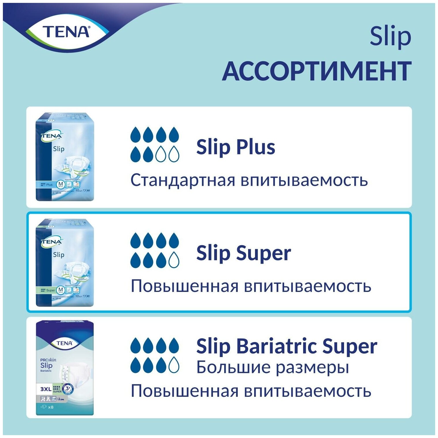 Tena Slip Super / Тена Слип Супер - дышащие подгузники для взрослых, S, 30 шт. 2 426 ₽