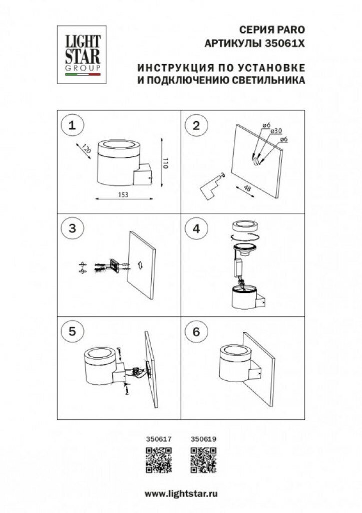 Настенный наружный светильник Lightstar Paro 350617 информация: