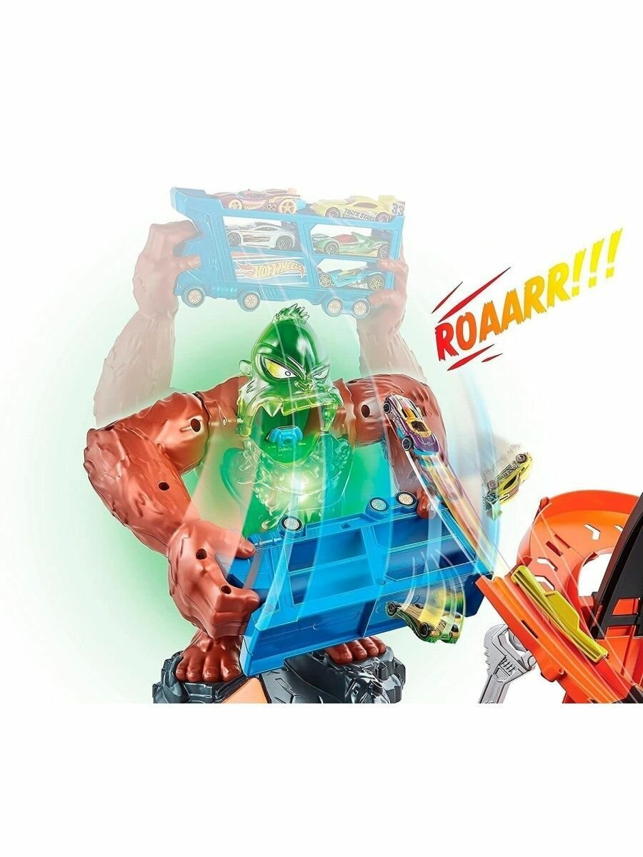 Hot Wheels Сити Автотрек Атака бешеной гориллы с машинкой, GTT94