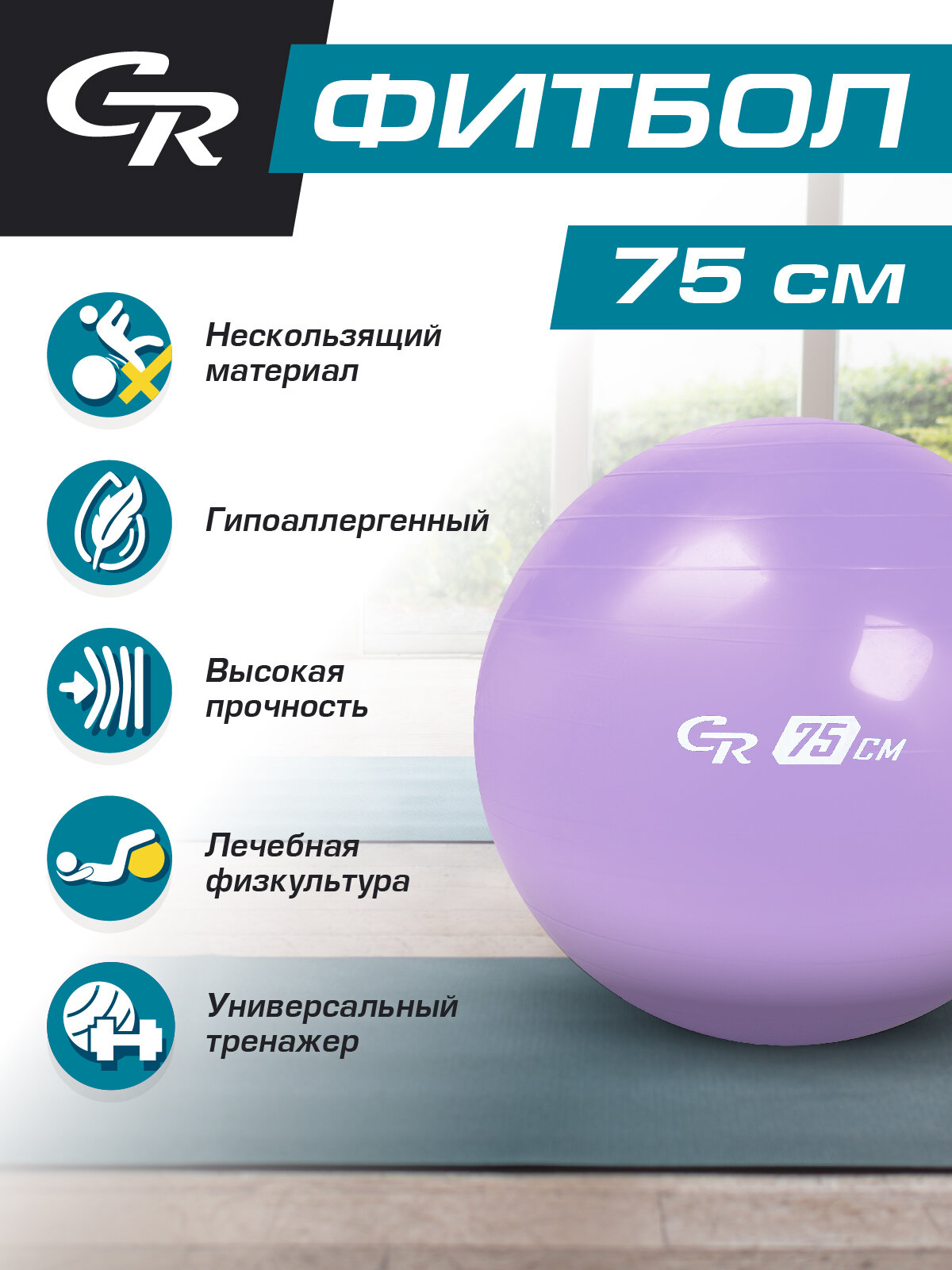 10 цен на Мяч гимнастический, фитбол, для фитнеса, для занятий спортом, диаметр 75 см, ПВХ, лавандовый