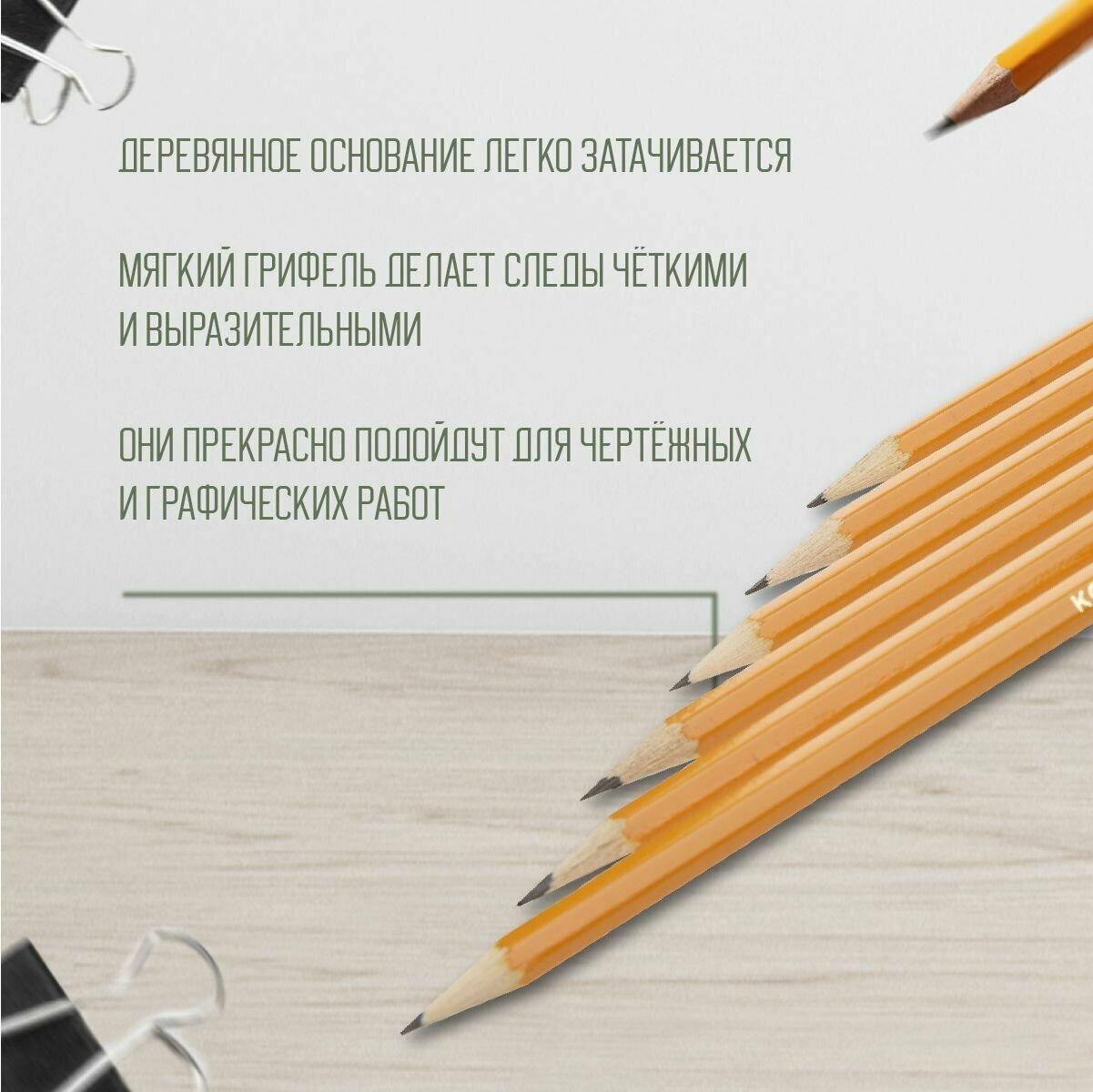| Твердость грифеля | 2B / B / HB / 2H / F / H |